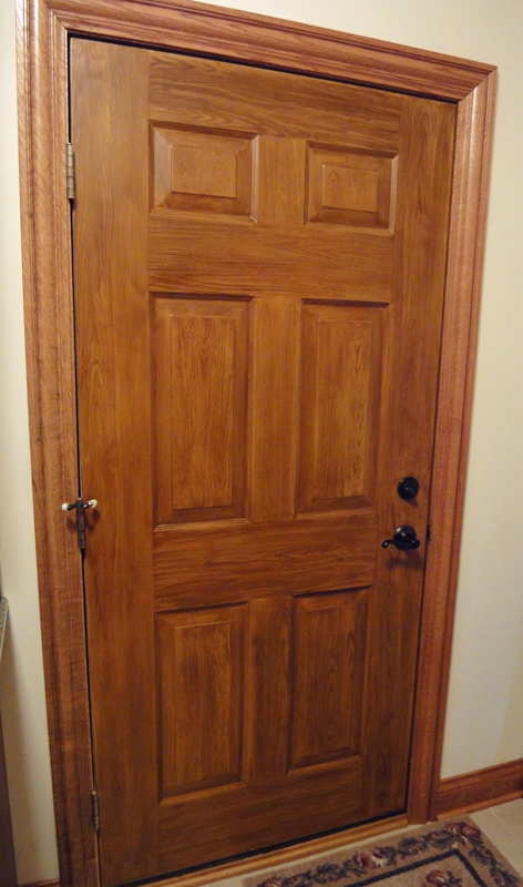 This is an example of a steel exterior door that was painted to look like an oak wood door.